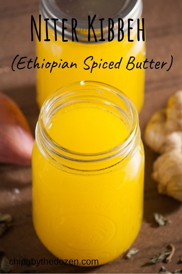 Like the regular ghee used in cooking, Niter kibbeh is a spiced clarified butter staple ingredient in Ethiopian and Eritrean cuisine. It is made by slowly simmering butter with various aromatic spices, such as cumin, coriander, cardamom, cinnamon, and fenugreek.